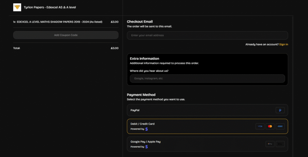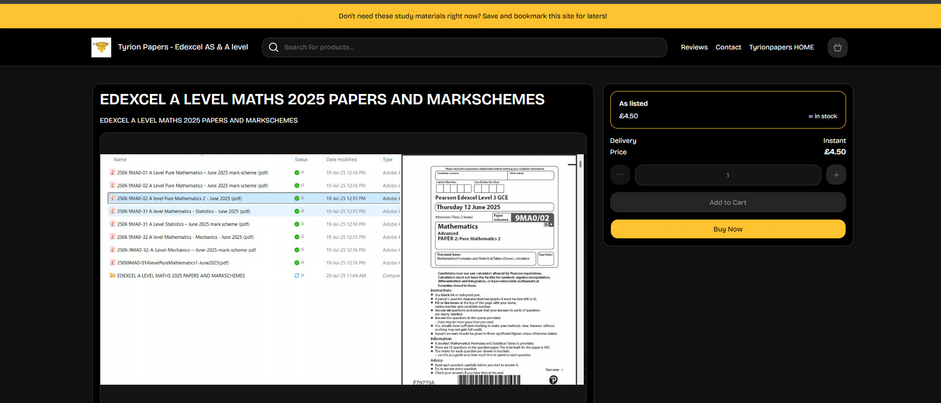 Note: You can only add similar items like EDEXCEL GCSE papers or OCR topic tests into the same cart